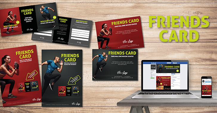 Machen Sie mit Plakaten Ihre Mitglieder auf die Aktion aufmerksam und geben ihnen aktiv die Friendscards zum Weiterverschenken in die Hand. Bewerben Sie die Kampagne auch über Social-Media-Kanäle wie Facebook und Instagram! Extern sollten Sie die Friendscards an alle Haushaltungen in Ihrem Einzugsgebiet verteilen. Da immer gleich zwei Interessenten in Ihren Club kommen, ist diese Kampagne sehr effizient!