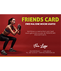Mit der Friendscard geben Sie Interessenten die Möglichkeit, zu zweit Ihren Club zu testen. Studien beweisen, dass die Motivation und die Effizienz beim Training mit einem Trainingspartner deutlich gesteigert wird. Außerdem erhöhen Sie die Chance, dass aus Interessenten Mitglieder werden.