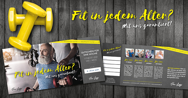 MaxiCard XL und XXL-Karte enthalten einen Gutschein, mit dem die Best Ager eine Woche lang alle Fitness- und Wellness-Angebote Ihres Clubs nutzen können. Bei der MaxiCard ist der Gutschein an einer Perforation abtrennbar. Eine als Gutschein ausgelegte Wochenkarte im Scheckkartenformat kann für eine bring-a-friend-Kampagne genutzt werden.