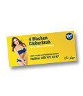 Für die externe Werbung gibt es Maxicards XL, XXL-Karten, Anzeigen, Haus- und Webbanner. Maxicards XL (13,8 x 29,7 cm) sind preiswert, haben ein abtrennbares Clubticket und sehen durch das 300g Papier und den beidseitigen Mattlack sehr ansprechend aus. Die XXL-Karten fallen wegen Ihres übergroßen Formats (16,0 x 32,4 cm) auch in einem großen Prospekt-Stapel auf.