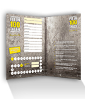 Das Herzstück der Kampagne ist eine 4-seitige Mappe incl. Abheftvorrichtung, in die Trainingspläne, Anamnesebogen, Gesprächsnotizen usw. abgeheftet werden können. Bei jedem Besuch wird ein Feld vom Trainer abgezeichnet. Damit ist sichergestellt, dass immer wieder ein persönlicher Kontakt zwischen dem Neukunden und dem Trainer entsteht. Auch die körperlichen Anfangs- und Endwerte werden hier notiert, sodass der Trainingserfolg der ersten 100 Tagen sichtbar wird – eine wichtige Voraussetzung für den Abschluß einer Mitgliedschaft!
