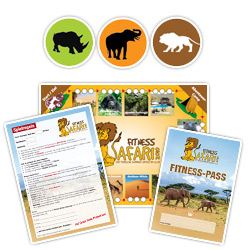 "Fitness-Safari" – das sind sorgfältig aufeinander abgestimmte Werbemittel mit professioneller Mechanik. Das Paket beinhaltet alle Materialien, die Sie für eine erfolgreiche interne Durchführung benötigen. Darüber hinaus gibt es vielfältige externe Werbemittel für die Gewinnung neuer Kunden.
