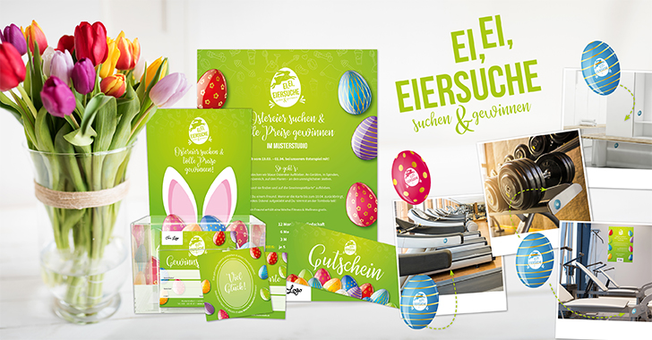 Wie bei Spiel 1 starten Sie in der Osterwoche das Spiel, nachdem Sie zuvor mit den A1-Plakaten ordentlich Werbung dafür gemacht haben. Jeden Tag verstecken Sie 50 blaue Eier-Aufkleber in Ihrem Club – an Geräten, an Wänden, in den Fluren, im Kursbereich, in den Spinden. Ihre Mitglieder suchen die Eier und kleben sie auf ihre Gewinnspielkarte.